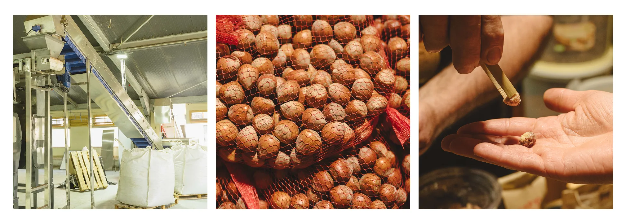 L’exploitation familiale est guidée avec une vision durable de la production de fruits à coque. André et ses deux fils disposent du matériel pour la culture en passant par la transformation dans leur laboratoire jusqu’à la distribution.